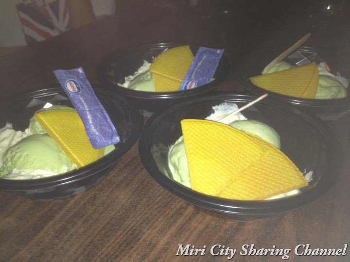 The matcha ice cream has the green tea ice cream taste. Matcha ice (抹茶のアイスクリーム Matcha no aisu kurīmu) is an extremly popluar ice cream flavour in Japan. Served with two small little waffle and cream. Taste good. The current price here is RM4.90 each.