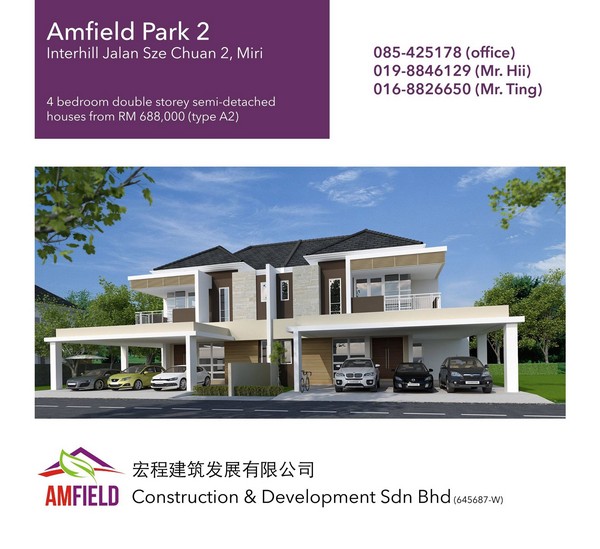 Double Storey Semi-D from RM688k & Double Storey Terrace House from RM528k at Interhill Jalan Sze Chuan 2, Miri.