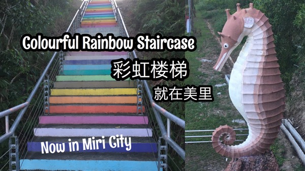 If you walk around Taman Awam Miri – you’ll found that there is a rainbow-painted staircase once you’ve walked from Miri Public Park (Taman Awam Miri) through a skywalk with two seahorse statues in order to reach the opposite site.