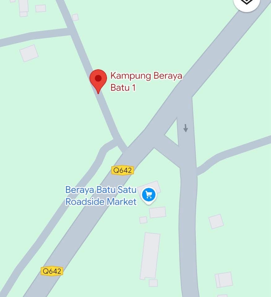 • Maintain navigation toward Kampung Beraya Batu 1, staying alert to any junctions or turns indicated by signs.