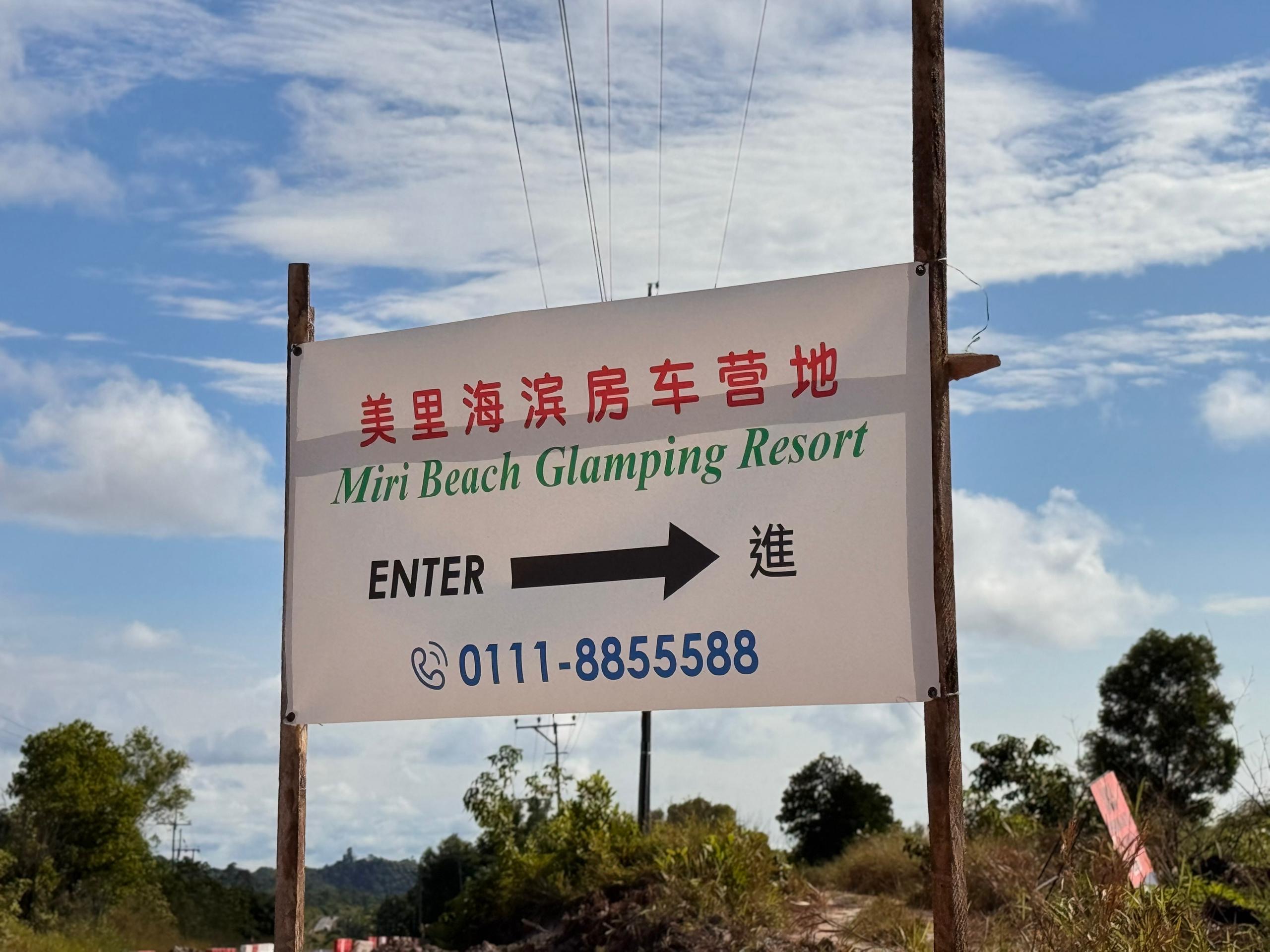 • Since the resort is new, once you reach Kampung Beraya Batu 1, look for locally placed signboards for “Miri Beach Glamping Resort” or similar directions.