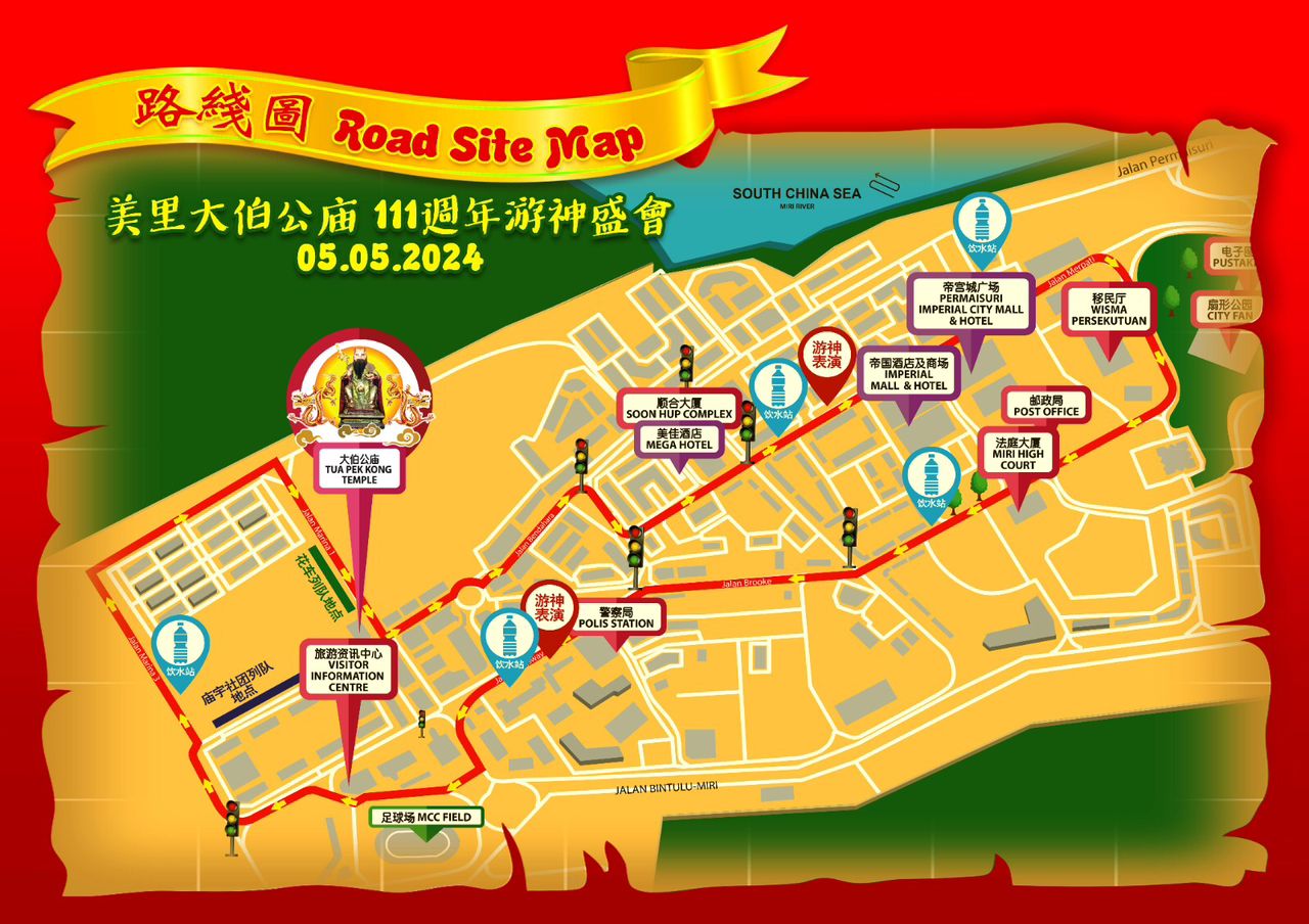 This Sunday, you can go to Miri to see the grand procession of Tua Pek Kong. The Tua Pek Kong Statue, known as the largest in Southeast Asia, will celebrate its 111th anniversary with a vibrant parade on May 5th.