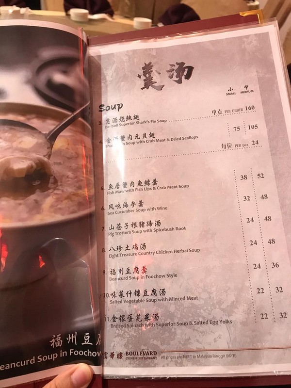 富華樓 Boulevard Chinese Restaurant menu preview with price for your references: