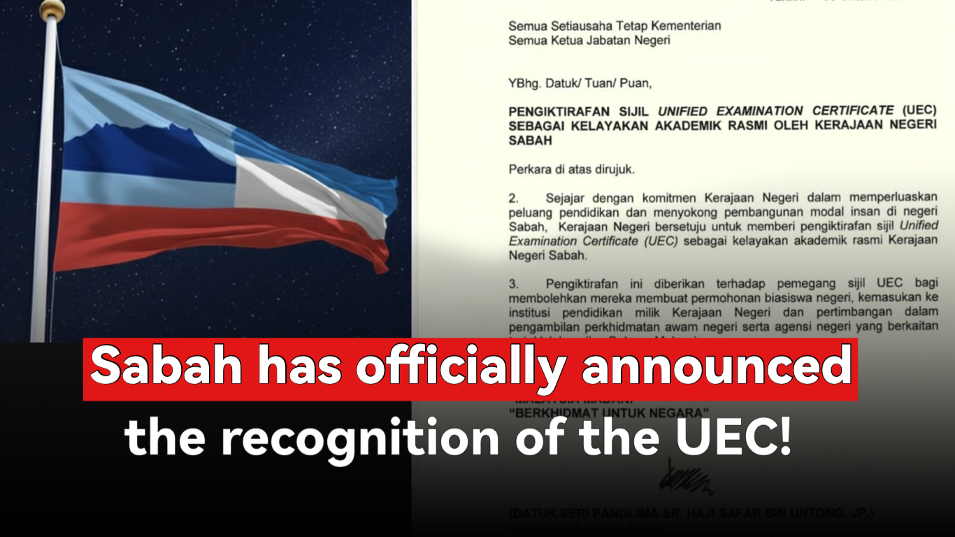 In October this year, Sabah Chief Minister Datuk Seri Hajiji announced that the state government now officially recognises the Unified Examination Certificate (UEC) and has allocated RM5 million to establish a new UEC Scholarship Fund. This fund will provide special educational assistance to students holding UEC qualifications.